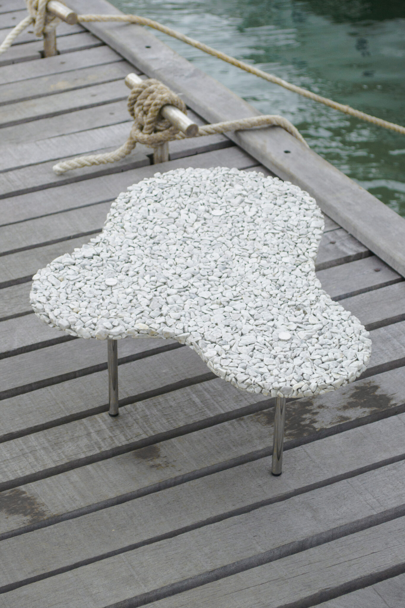 Ambiente: interno e externo (apenas estrutura em alumínio com tampo em rocha natural)