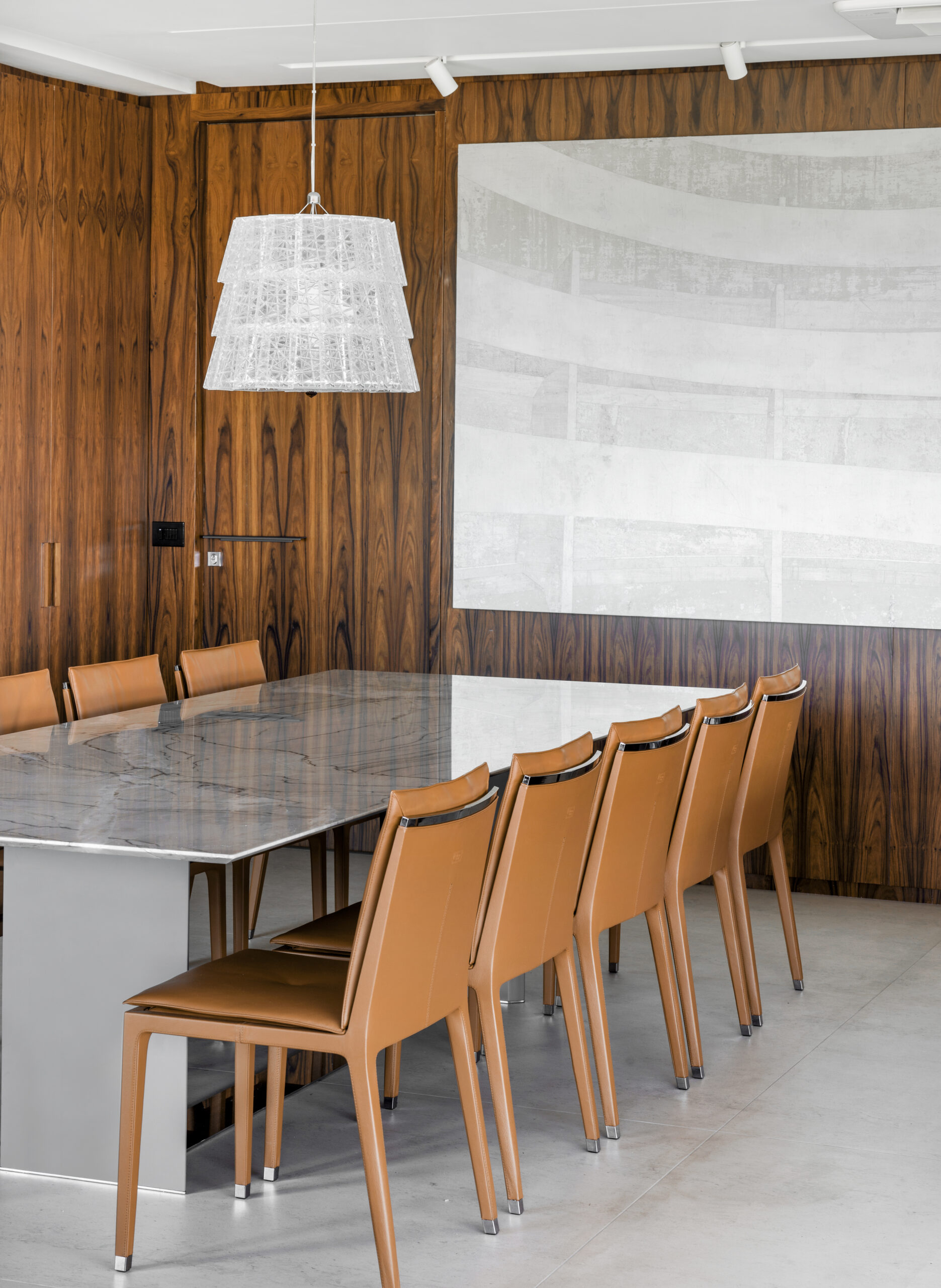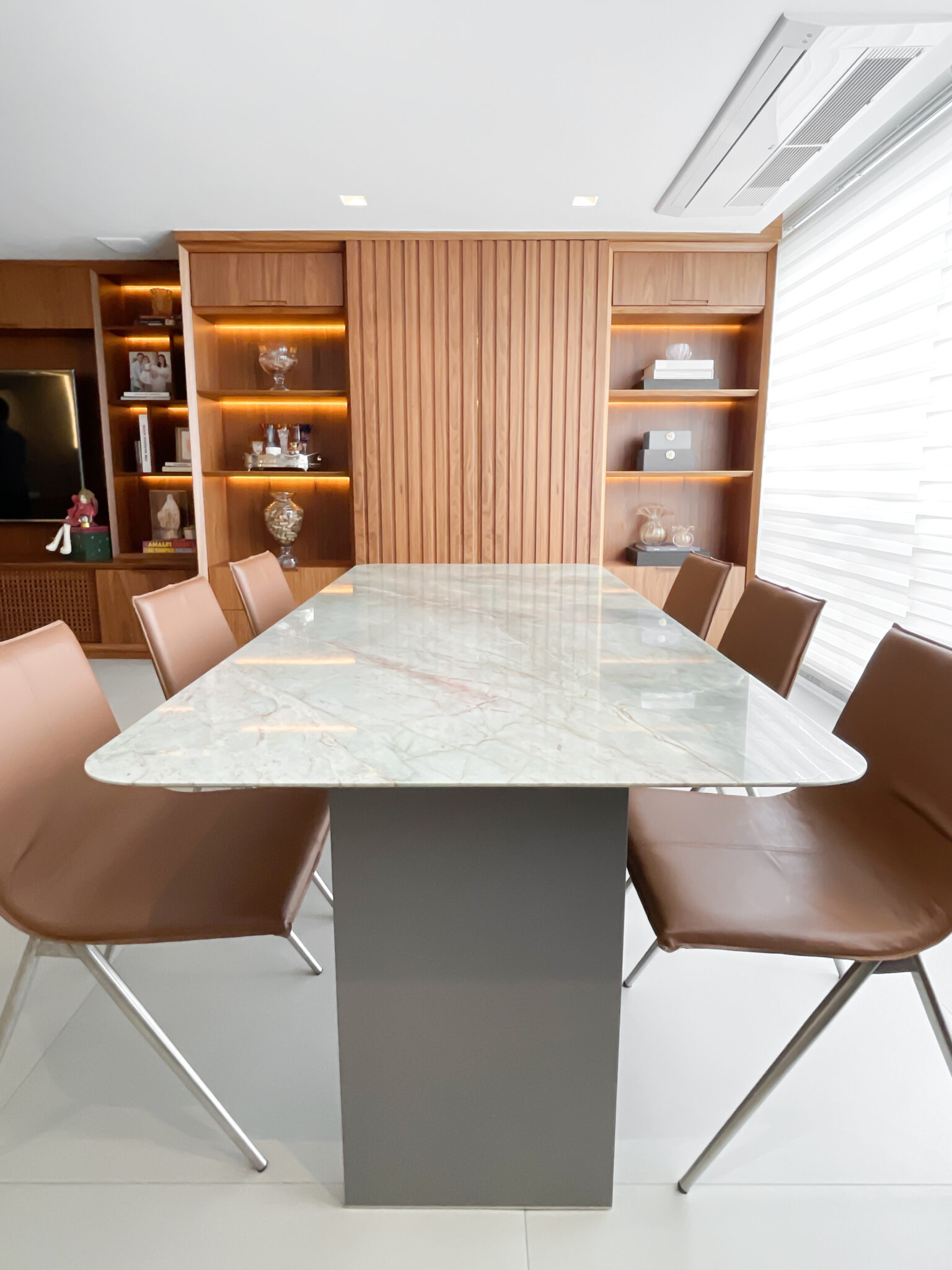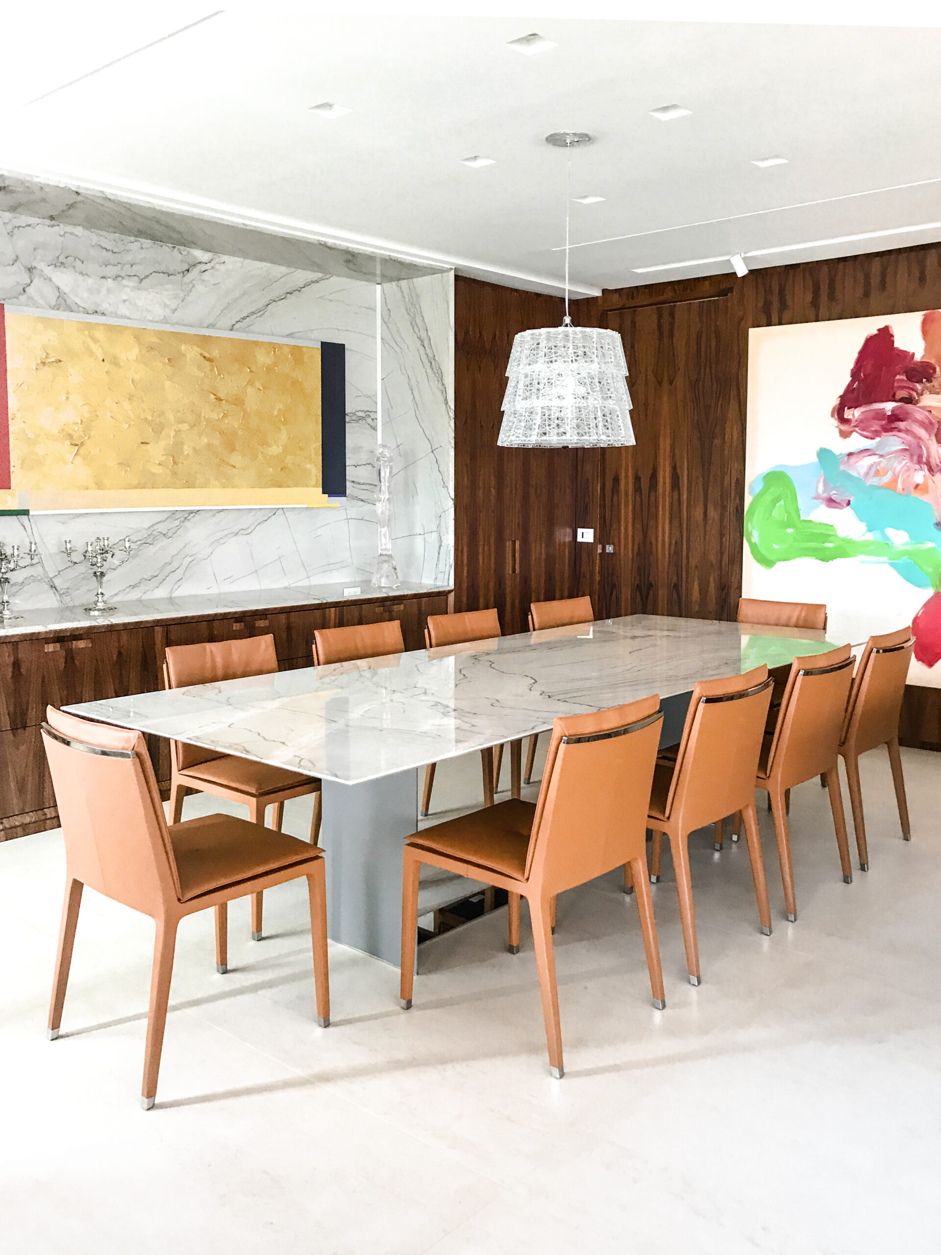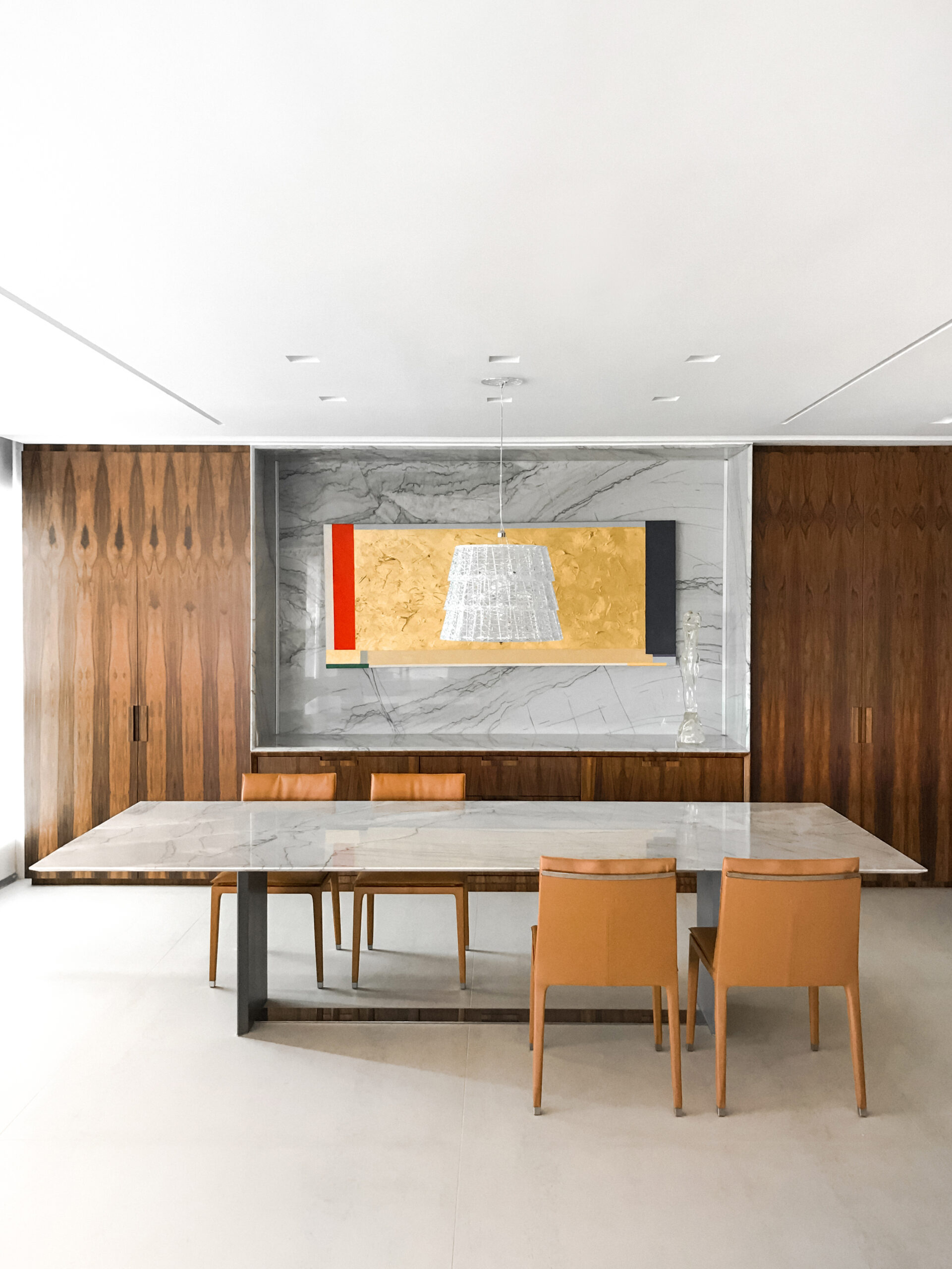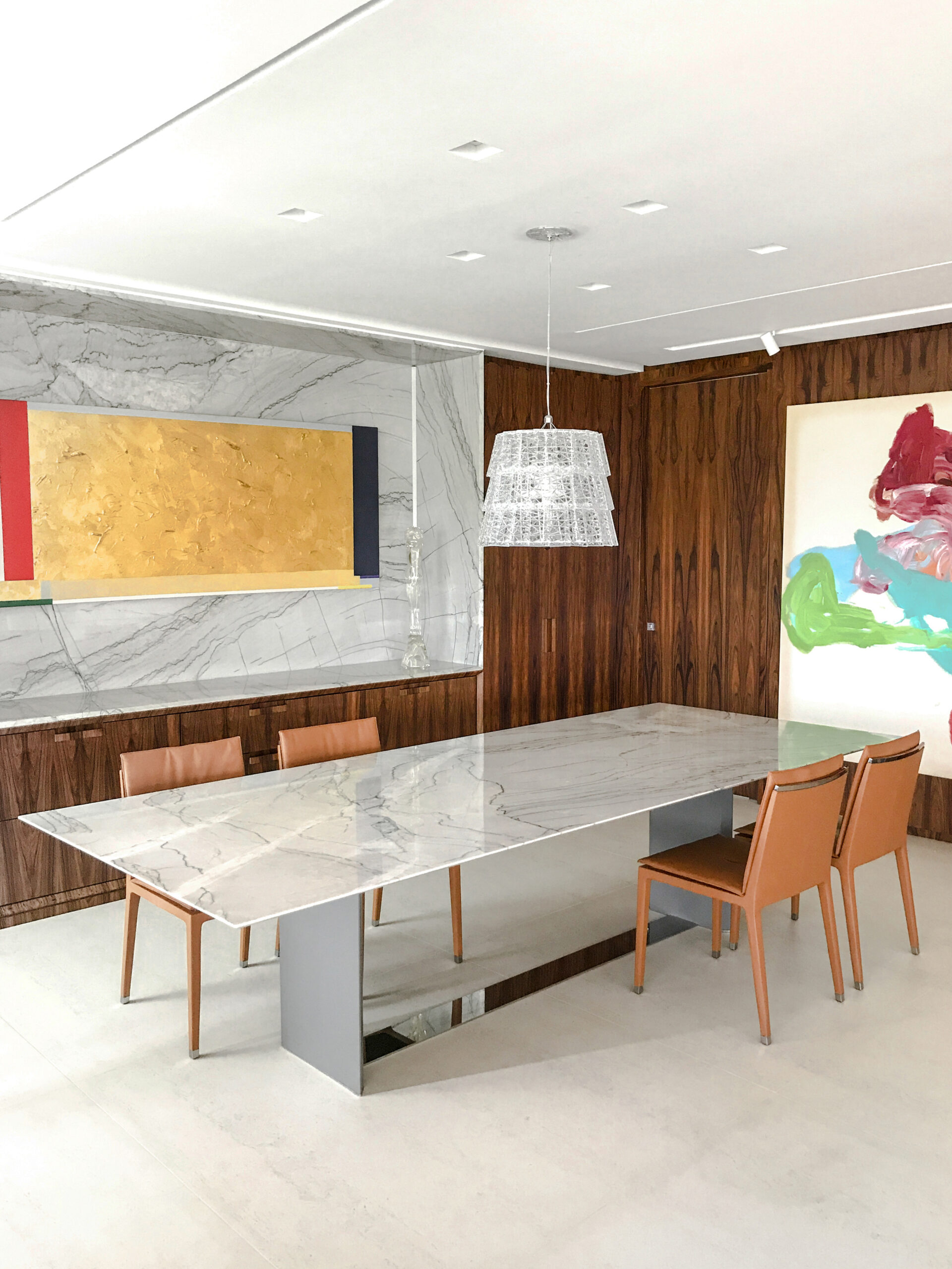 A mesa de jantar Origami se destaca por seu design minimalista e elegante, sustentada por duas estruturas esguias ligadas por um perfil de inox em sua base. Esta peça é uma expressão de sofisticação atemporal, adaptando-se harmoniosamente a diversos estilos de decoração.